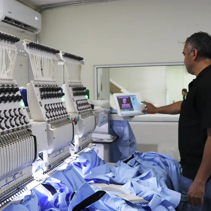 Somos un taller especializado en bordado industrial, equipado con maquinaria multicabezal de 2 a 8 cabezas que nos permite producir en volumen con máxima precisión y uniformidad.