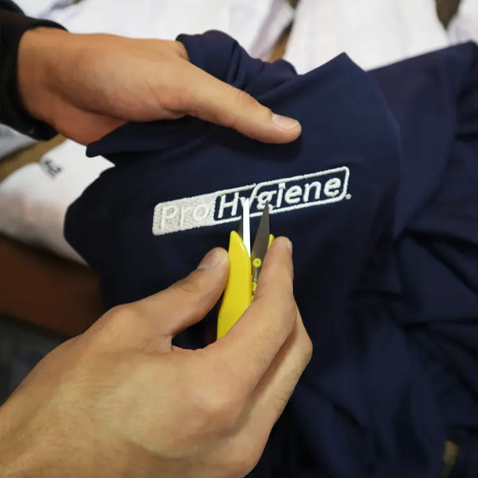 Revisamos acabados, limpieza y resistencia del bordado antes de la entrega final.