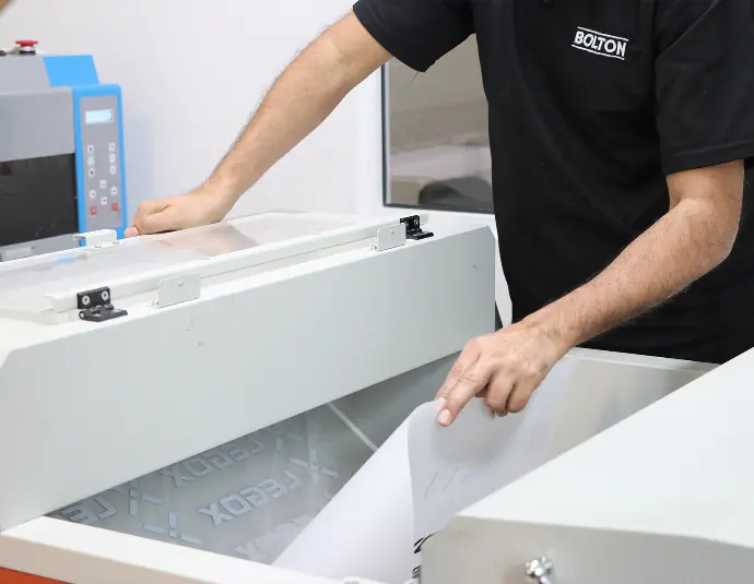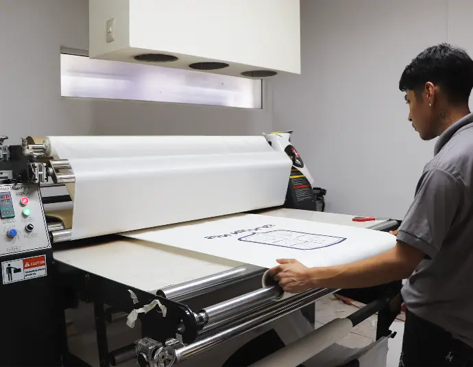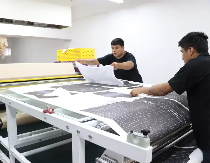 Realizamos la transferencia mediante calandras de sublimación, aplicando presión y temperatura controladas para lograr una fijación uniforme y duradera.